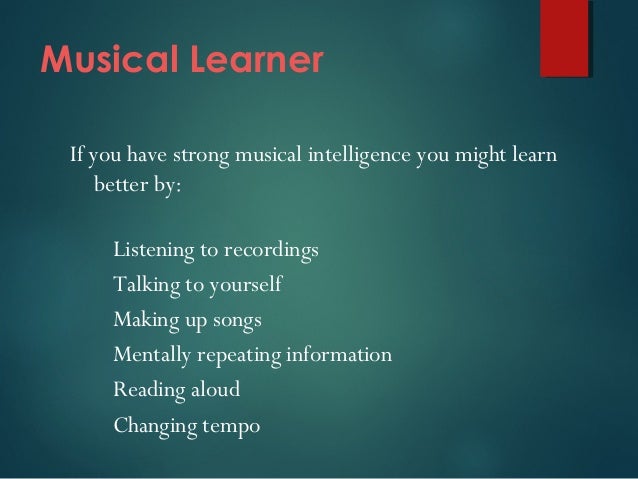 Before we dive into musical intelligence, we should first cover gardner's theory of multiple intelligences. People with musical intelligence have sensitive ears. A turing test for musical intelligence? In linguistic intelligence the individual has easiness and necessity of the writing to understand or to learn some thing. How does music affect intelligence?